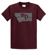 This logo is only available in grey, and shirt colors (including long sleeve and hoodies) in maroon.This design is available in either a t-shirt, long sleeve, hoodie, and sleeve less.