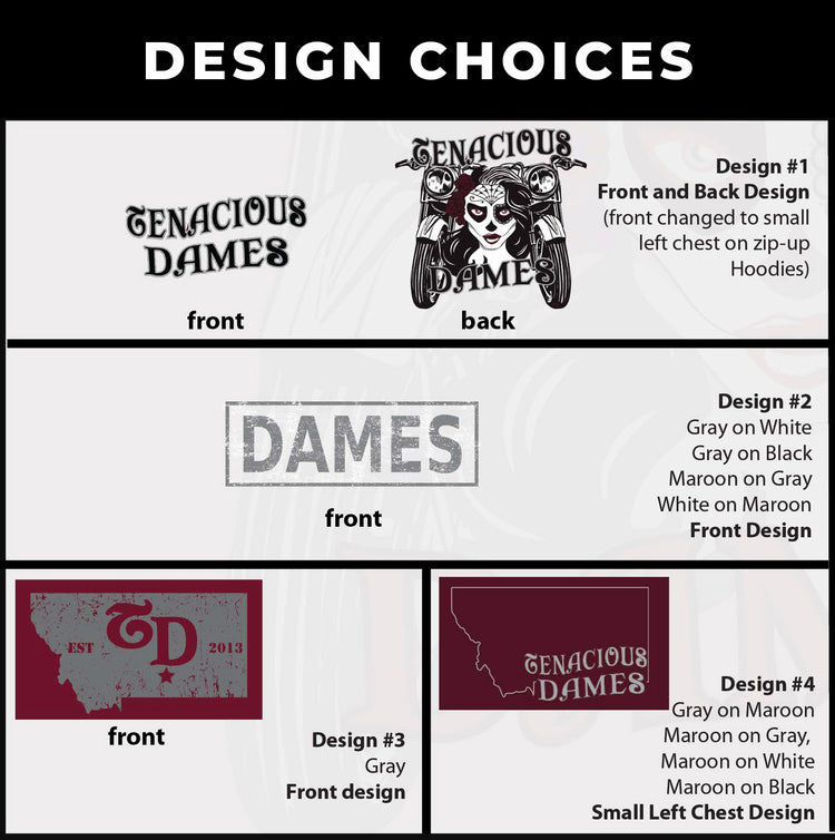 This top is currently offered in black, gray, or white and features your choice from four different member's only designs. For design options, please see the additional photos on this page.